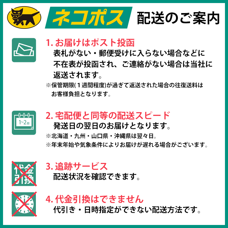 ネコポス での配送の場合、配送中にラッピング袋がよれてしまう場合がございますので、あらかじめご了承ください。