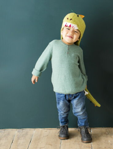 可愛らしい動物をモチーフにしたニット帽はまるで絵本から飛び出してきたよう。