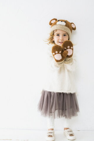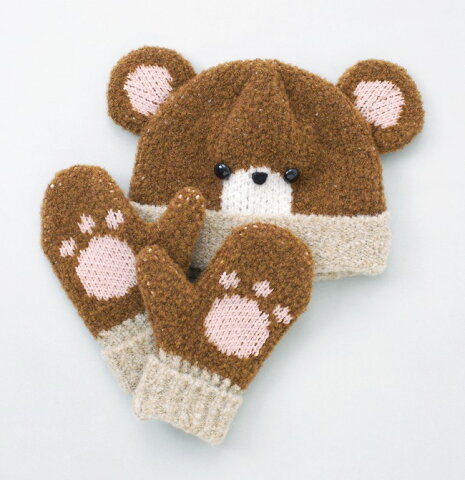 くまの帽子と手袋 まぁるい耳とつぶらな瞳にひと目惚れ! 肉球デザインの手ぶくろと合わせて、気分は森のこぐまさん☆