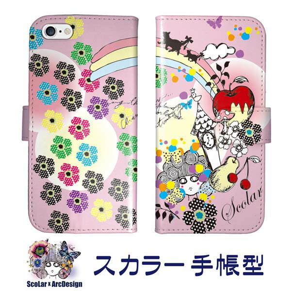 スカラー 手帳型ケース【ほぼ 全機種対応】SO-02K SO-01K SOV36 701SO SH-01K SHV40 F-01K SIMフリー UQ mobile スマホケース スマホカバー かわいい ファッション メルヘン お花 スカラコ りんご ピンク かわいい ポイント消化 大歓迎♪